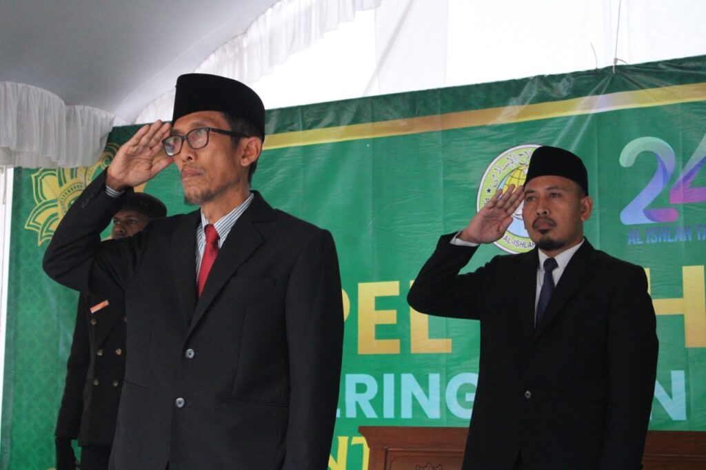 Pimpinan pondok juga melakukan inspeksi barisan peserta apel, menunjukkan perhatian dan kepedulian terhadap seluruh santri.