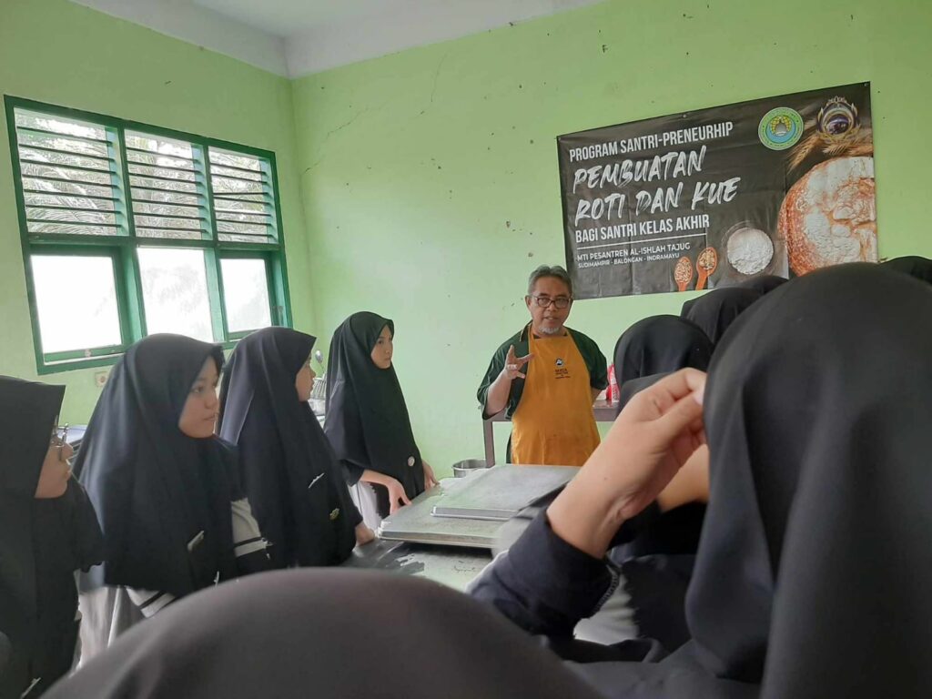 Setelah menyelesaikan semua program akademik, santri kelas akhir angkatan ke-20, Dignified Generation, mengikuti pelatihan kewirausahaan dengan konsentrasi pembuatan makanan berbasis terigu, roti dan bolu.
