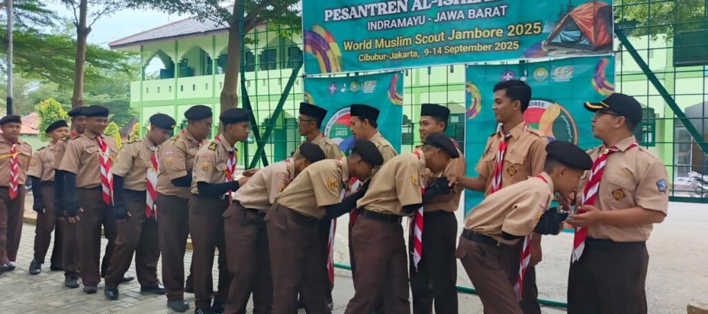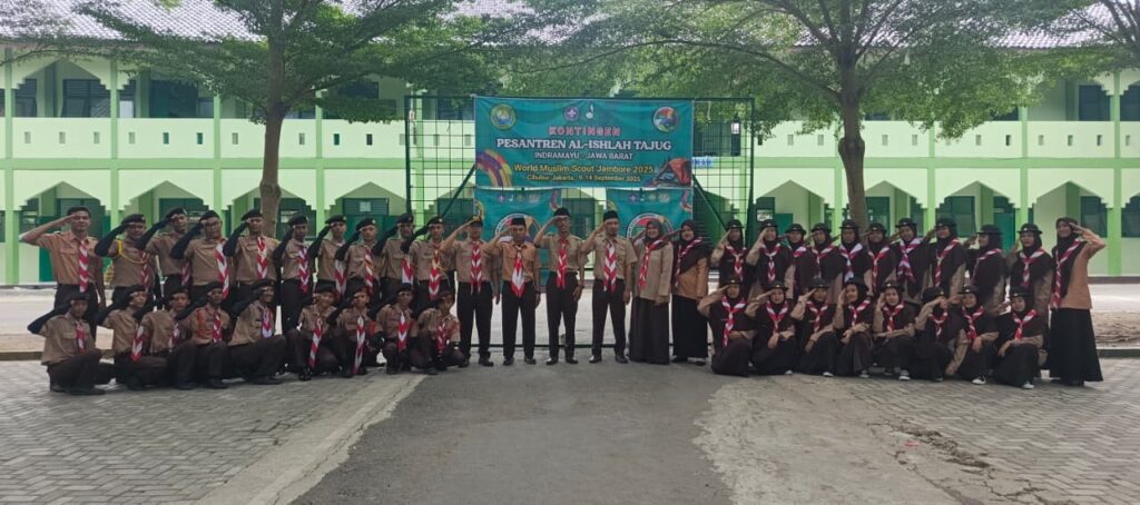 Pimpinan Pesantren di dampingi Direktur MTI, melepas 36 santri yang terdiri dari 1 regu putra , 1 regu putri, 1 sangga putra dan 1 sangga putri, untuk mengikuti World Muslim Scout Jambore 2025 (WMSJ) di bumi perkemahan Cibubur Jakarta selama 6 hari (9-14 September 2025).